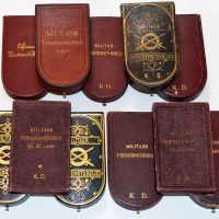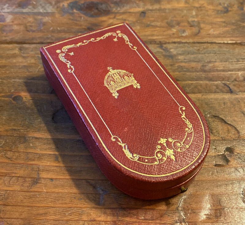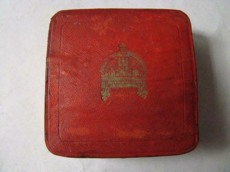 Nagyon jó, szinte újszerű állapotban lévő, zöld bársonnyal bélelt gyári tok, gyönyörű pecséttel. Hátulján pecsételt 1914 évszám. A poén az, hogy tizenegy darab arany és ezüst koronás és korona nélküli érdemkeresztem van, de pont nincs sima ezüst  Vincent Mayer's Söhne gyártmányú közöttük.