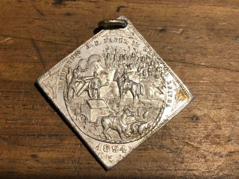 A szövege szerint "táborozási" érem, de gondolom, hogy ez is a hadgyakorlati érmékhez sorolható. Nem láttam még ilyet, és a sokszor emlegetett könyv sem ismeri. Illetve itt sem volt még feltöltve. Az érme képe is teljesen új, pedig a legtöbb veret ismétlődik.