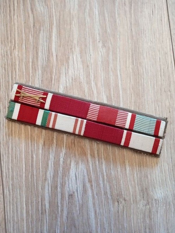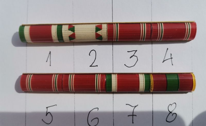 Magister által feltöltött Janza Károly tábornok fotójához tartozó szalagsávok, illetve a későbbi adományozási sorokat bemutató szalagsávok, ahol már a Vörös Zászló Érdemrend is szerepel. A sorrend mindhárom esetben más és más, valószínűleg az adományozás függvényében került legyártásra. A harmadik szalagsávsor érdekes, mivel hasonlót még nem láttam. Az egyes „szalagok” szélessége bőven meghaladja az átlagos szalagszélességet, viszont az okát nem tudtam kideríteni. A szalagsávokon néhány „lapocska” fordítva van befűzve, de a kiállítás, a tisztelet és a fellelhető fotók miatti hűség kedvéért ezen nem kívánunk változtatni. A sorok eredetiségéhez kétség nem fér.