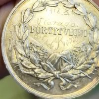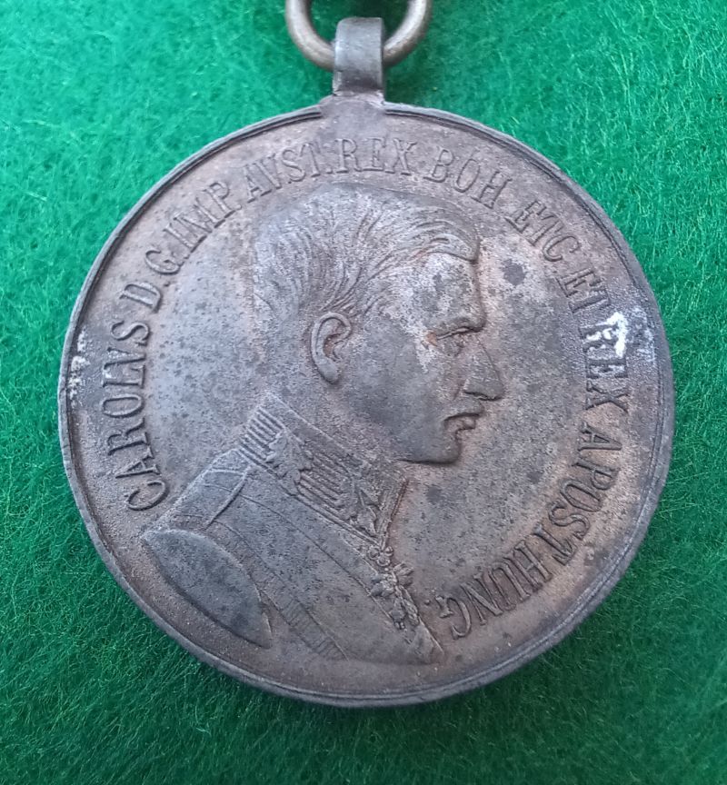 Inkább karcolt, mint vésett Károly "Kisezüst" (KAUTSCH). Jelzett ezüst, hátlapján „1918.X., Viarago col del Rosso” véséssel az éremképen ill. "Pikinek - Marci" véséssel a peremen. Hitelessége szerintem nem kétséges, szabad szemmel a vésés szinte nem is nagyon látható, az "1918" évszámon a két egyesen lévő pontot ebben a korszakban általánosan használták. Próbáltam utána nézni, ebben az időszakban bőven voltak magyar csapatok a környéken.