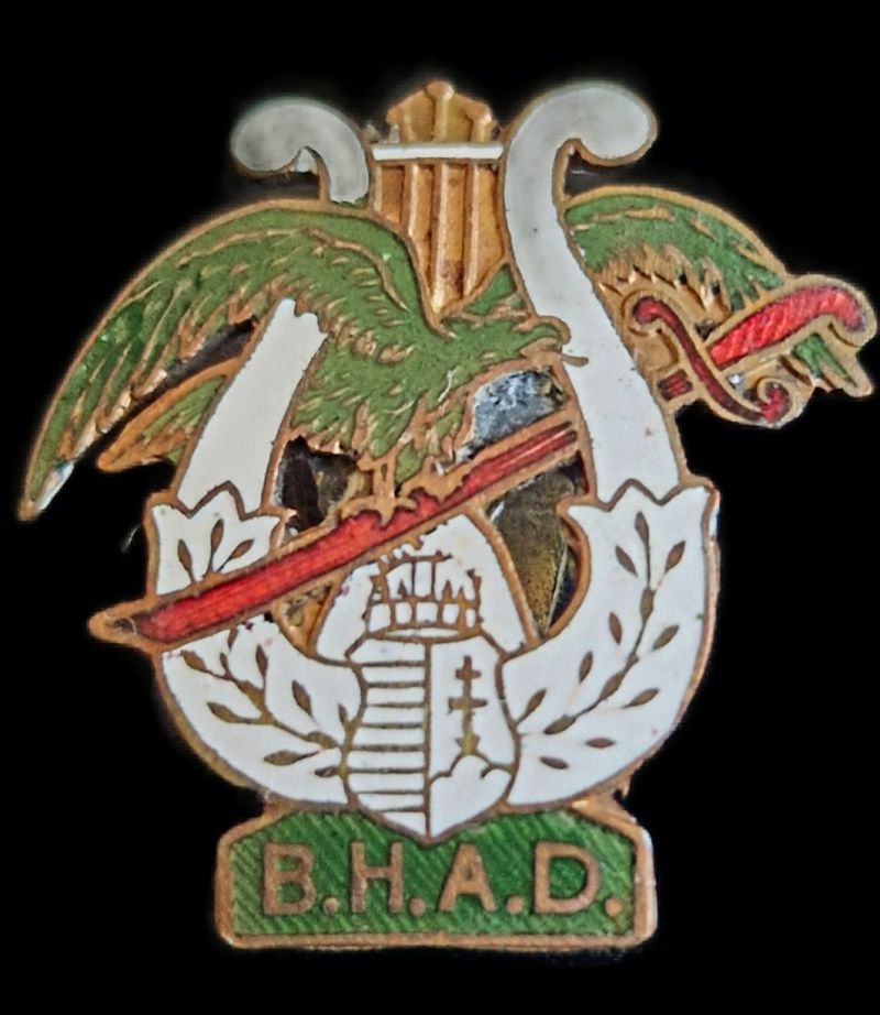 A Tagtársak segítségét kérem a jelvény beazonosításában, vajon a B.H.A.D. rövidítés mit jelenthet. Annyi azért szinte biztos, hogy a "B" helységet, a "D" pedig dalkört, dalárdát, dalegyletet takar.