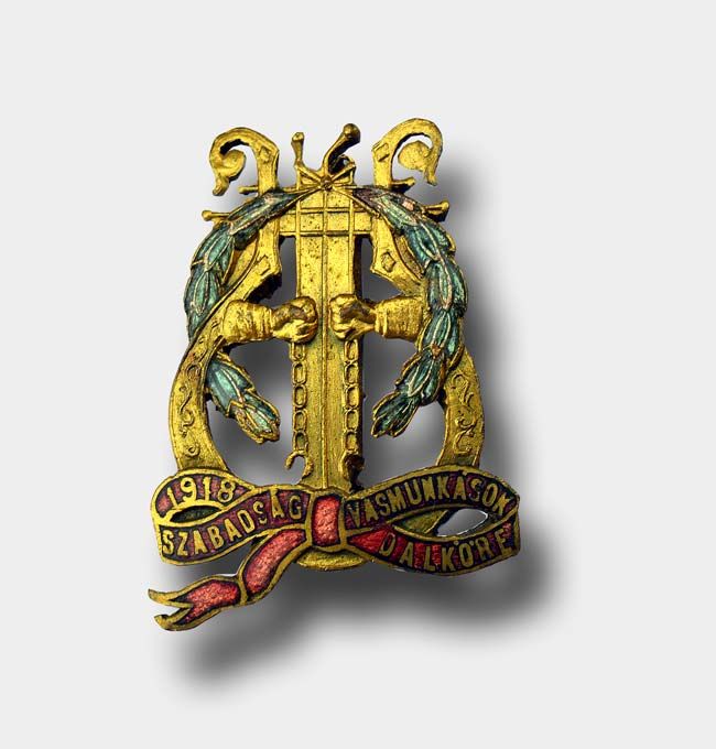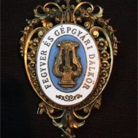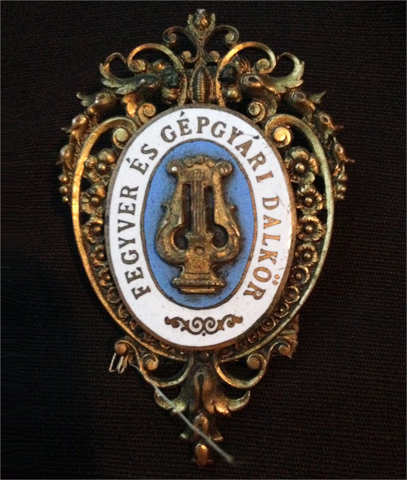 Fegyver és Gépgyár Dalkör, szerintem Monarchia, de még nem találkoztam ilyen jelvénnyel. Gondolom, elég ritka lehet. Nem tudom, hogy találkozott-e már valaki ezzel a jelvénnyel.