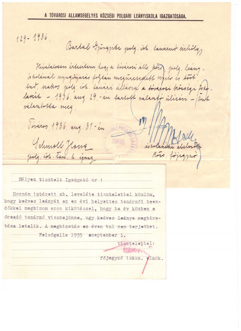 Az itt bemutatott levelekkel egészíteném ki, az 1. részben indított, édesanyám pályája bemutatását. Ahogy én látom, majd 100 évvel ezelőtt, az állások elnyerésének is megvoltak a maguk kijárt útjai!