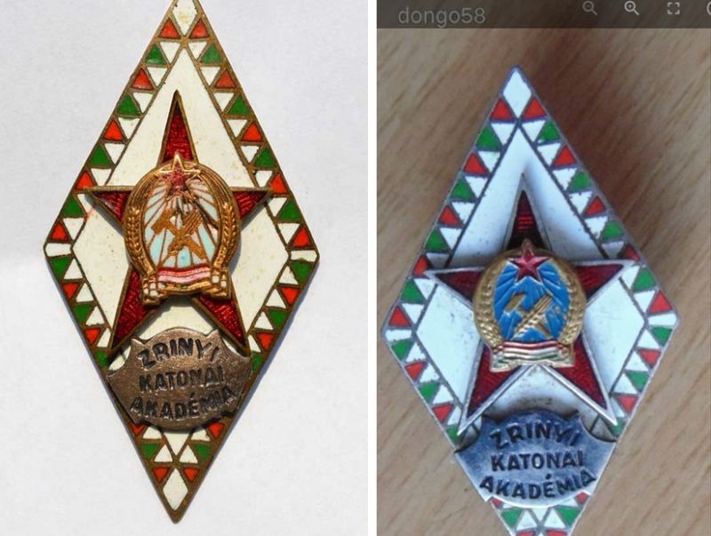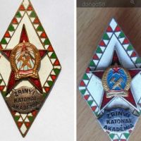 Zrínyi Katonai Akadémia Jelvénye Rákosi-kori címerrel, érdekes kék háttérrel és domború mintával.