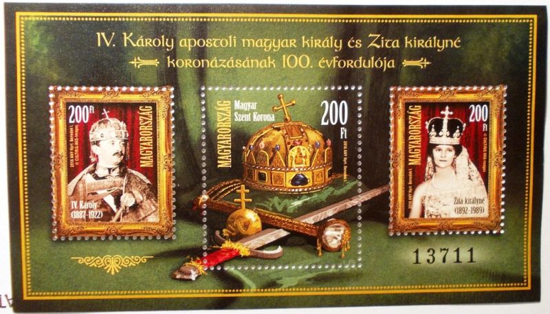 100 éve koronázták IV. Károlyt - alkalmi bélyegblokk