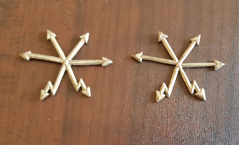 Segítségeteket szetetném kérni a képen látható jelvenypár beazonosításában. A darabok egy monarchiás katonai fegyvernemi jelvény csomag megvásárlásaval kerültek hozzám, még jópár évvel ezelőtt. Sajnos nem találtam róluk semilyen leírást. Ha valakinek volna információja ezekkel kapcsolatosan kérem ossza meg.