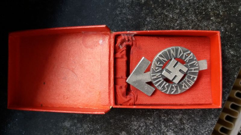 Most érkezett ez a piros kitüntetésdoboz, benne egy Hitlerjugend jelvénnyel. A jelvényt elpasszoltam nem az én területem, a doboz viszont megmaradt. Természetesen ez nem belevaló jelvény volt, de ha valaki tudná milyen lehet a doboz? Nagyon náci piros színe van. Hossza összezárva 7cm. Köszönöm!