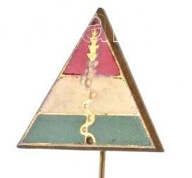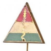 Ismeri valaki ezt a jelvényt? A színei alapján biztos, hogy magyar, valamilyen egészségügyi jelvénynek vélem, mert a közepén a jelkép határozottan Aszklépiosz botjának tűnik...
