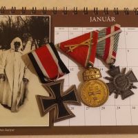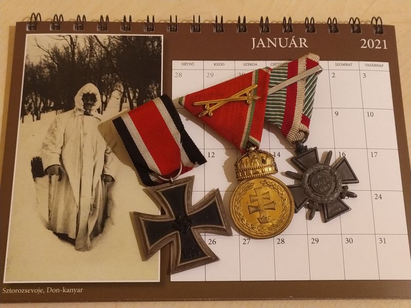 A dédapám Don-kanyarban kiérdemelt kitüntetései, a teljesség igénye nélkül. Az ezüst signum laudis hadiszalagon kardokkal-t ugyan a harcokért kapta, de csak 1943 október 16-ai napon terjesztették fel rá. A naptárat én és apám terveztük, és szerintem nagyon hangulatosra sikeredett. Bővebb információt a leírásban adok, mind a naptárról, mind azon tényekről, amiket a harcokról tudok.