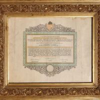 A Nemzetvédelmi Kereszt adományozó oklevele bekeretezve