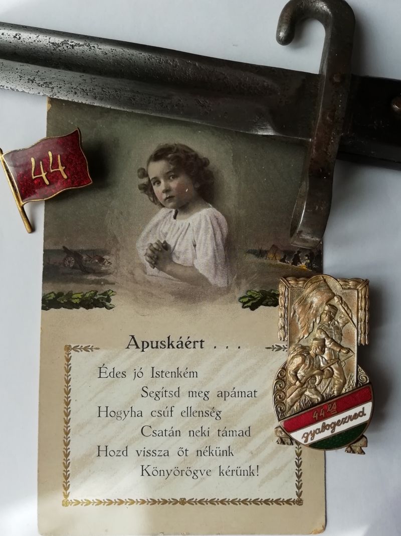 Üknagyapám Dobos András (szül.:1877.07.26.,Tisza Polgár, an.: Erdei Erzsébet) a nagy háború idején a Miskolci M.Kir. 10. honvéd gyalogezrednél szolgált, mint őrmester. Emlékére szeretném rekonstruálni a lehetséges sapkáját. Már az ezredhez köthető két sapkajelvényt be is szereztem. Kérdezném a hozzáértő tagtársakat, hogy a jó ízlés határain belül még mi az ami rákerülhetne?