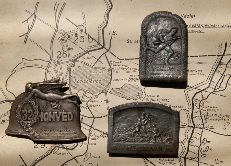 Három honvéd gyalogezred sapkajelvényén is szerepel Kostanjevica csatahely megjelölés. Ezt a hármat mutatja a kép.