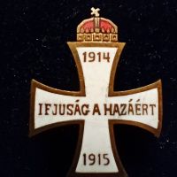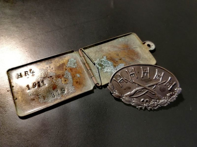 Az évszám és a K monogram miatt, no meg a császári korona révén is én mindenképpen első világháborús sapkajelvényként tartom számon ezt a darabot. De vajon mi lehet az ábra (betűk?) jelentése?