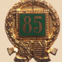 A jelvény alsó részén a két vármegye címere látható. A 85-ös szám azért van zöld mezőben, mert ez volt az ezred hajtókaszíne. A Monarchia közös gyalogezredeinek egyenruházatát a gyalogezredekre egyedül jellemző színekkel egymástól megkülönböztették.