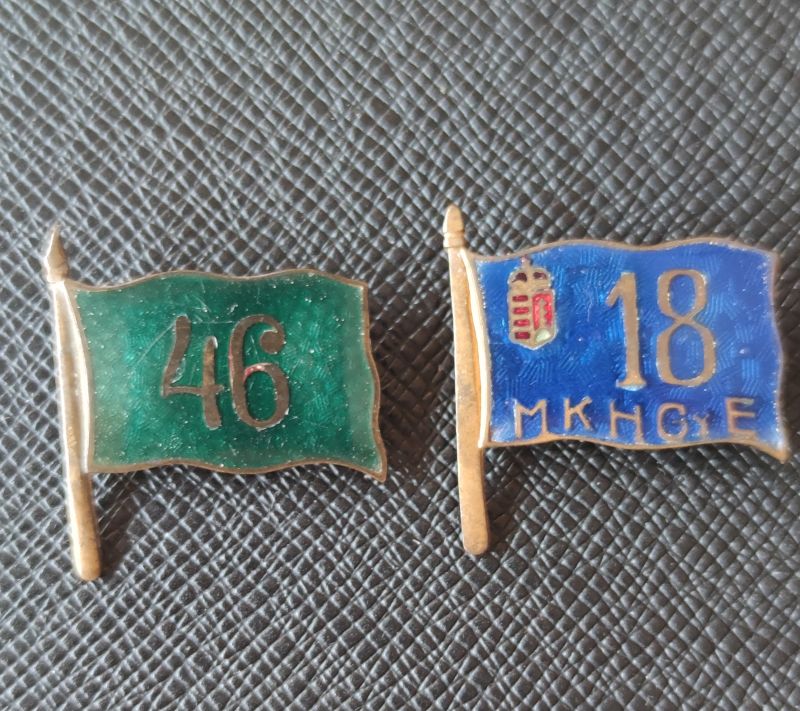 A december két zászlócskát is hozott, a honvéd 18-as zászlócska csere volt (köszönöm itt is Miklós!) a közös 46. szegedi gyalogezred jelvénye pedig Bulgáriából érkezett haza. Utóbbinak a tűje sajnos törött.