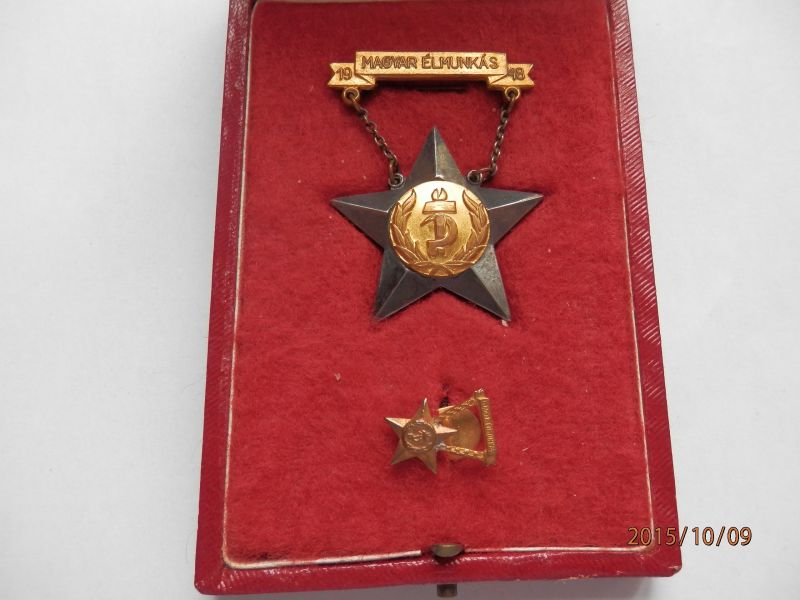 Ha jól tudom ennek a kitüntető jelvénynek volt egy olyan (későbbi) változata is, melyen egy alak látható. Meg tudja valaki osztani? Előre is köszönöm!