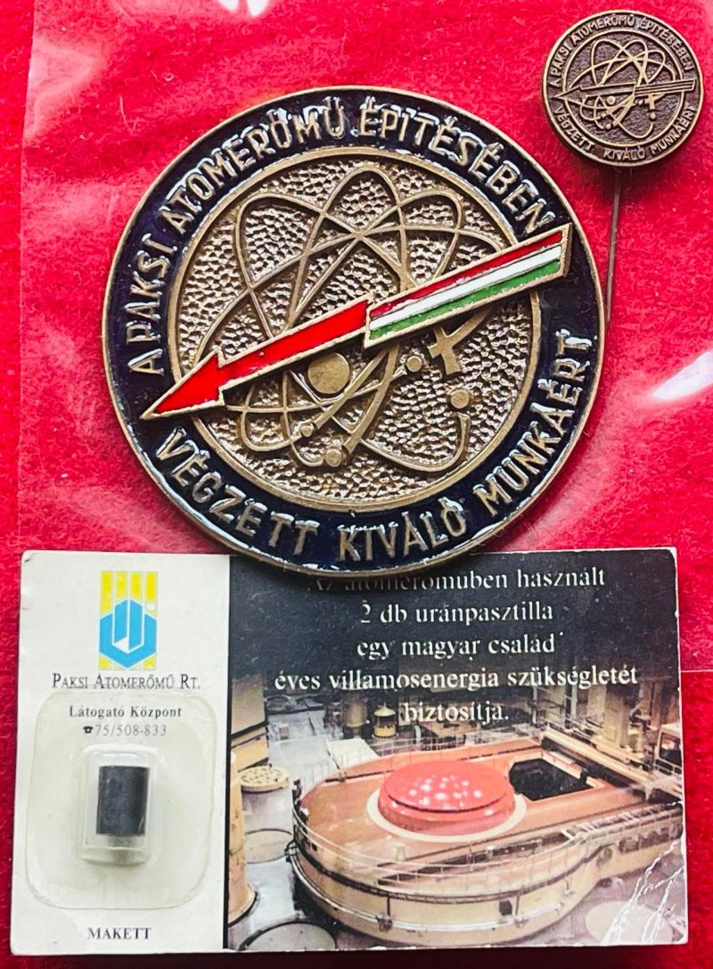 "A PAKSI ATOMERŐMŰ ÉPÍTÉSÉBEN VÉGZETT KIVÁLÓ MUNKÁÉRT "kitüntető plakett és jelvénye.
