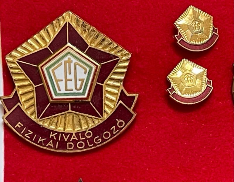 A FÉG "KIVÁLÓ FIZIKAI DOLGOZÓ" kitüntető jelvénye, miniatűrrel.