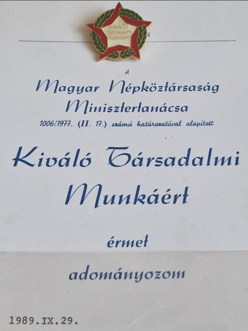 A Magyar Tudományos Akadémia kiváló dolgozója kitüntető jelvény adományozóval és törzsgárda jelvénye arany, ezüst, fokozata.
