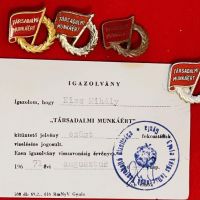 Az OTP kiváló dolgozó jelvénye az adományozó oklevéllel és viselési igazolványával.