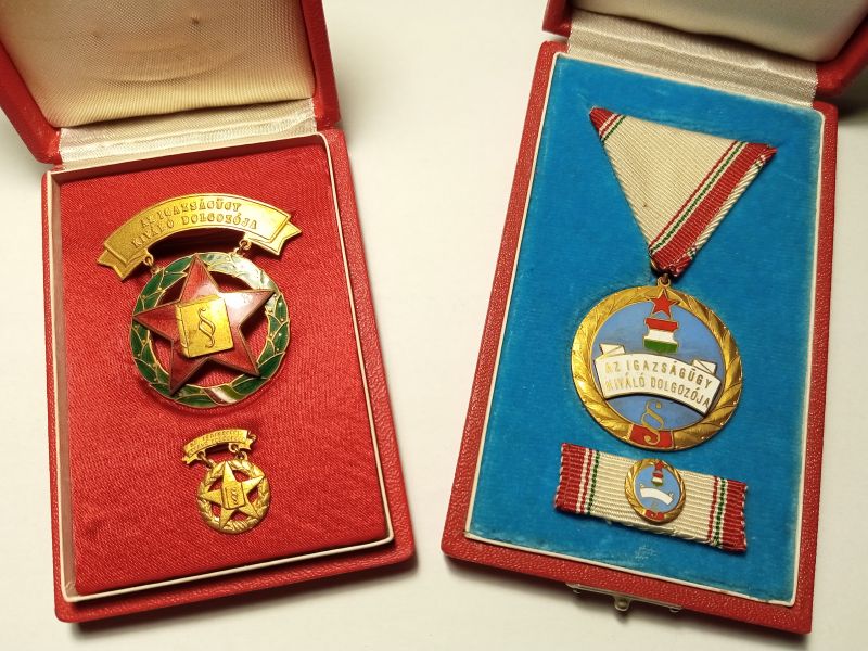Az Igazságügy Kiváló Dolgozója kitüntető jelvény 2. és 3. típusa, lehet már szerepeltek, egy korábbi remek tanulmányban a fórumon, de így dobozosan nem.