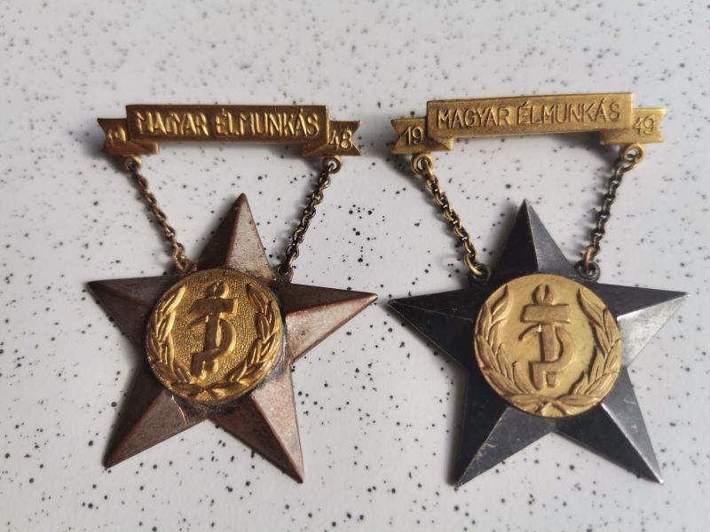 Ugyanazon évben kétszer lett kitüntetve a dolgozó, az érmek azonban anyagukban mások. Igaz, a kitüntetés táblája sem ugyanaz.