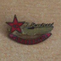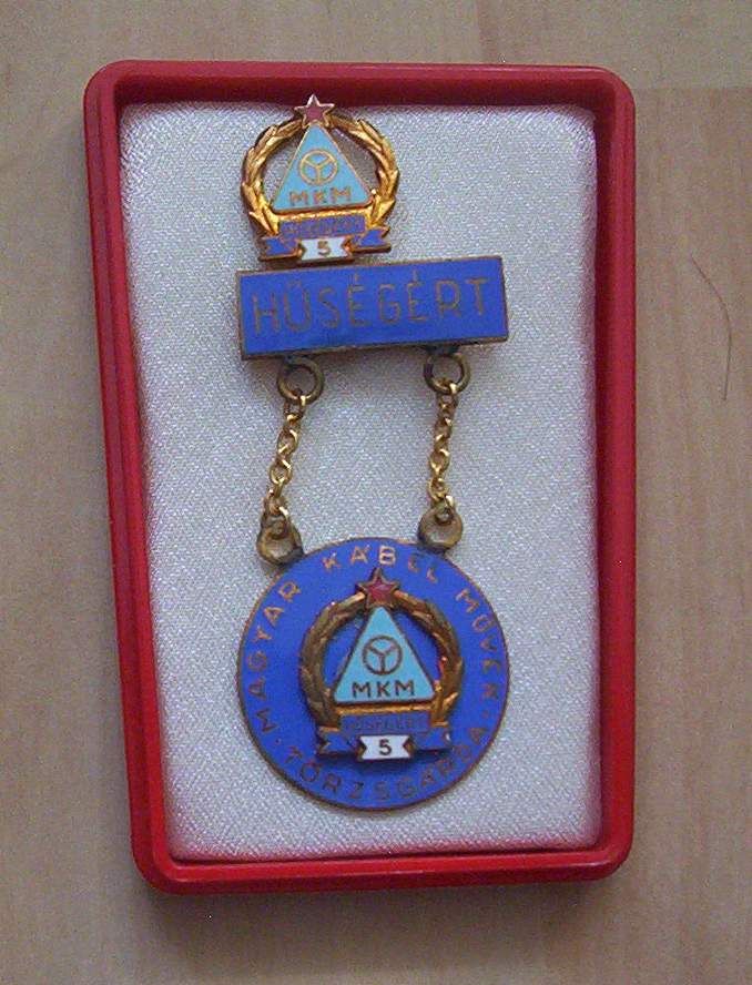 Az Ózdi Kohászati Üzemek 10 és 15 éves törzsgárdajelvényei, köztük az 1989-ig a város címereként funkcionáló kép.