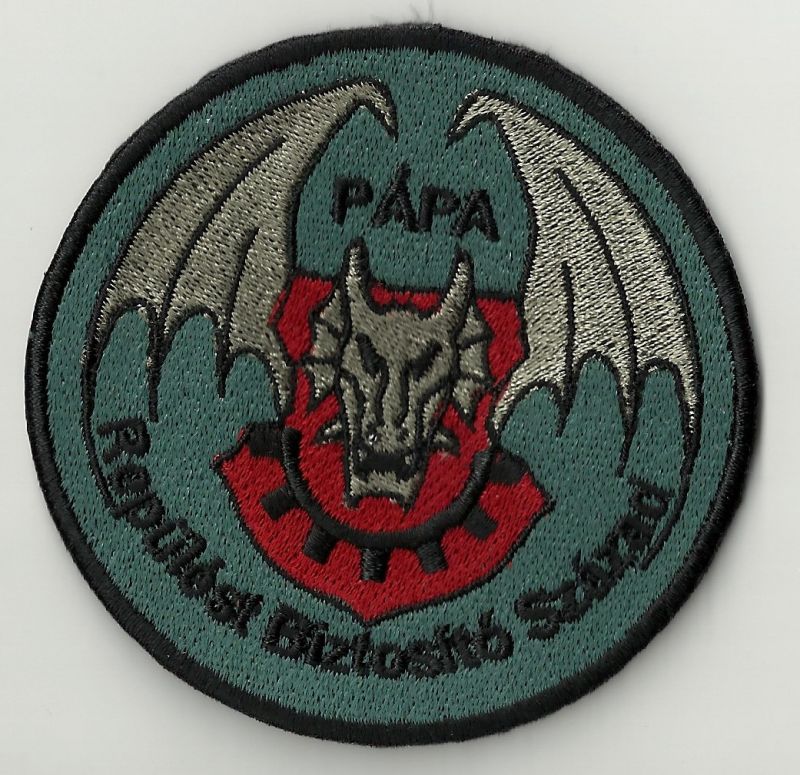 Ez a pápai C-17-esek karbantartóinak új karjelzése. Ők nem katonák, hanem a Boeing civil alkalmazottai. Nekem nagyon tetszik. A C-17-est Moose-nak, azaz Jávorszarvasnak becézik, innen a jelképválasztás a felvarrón. Igen harcias karbantartó.