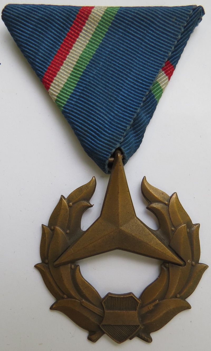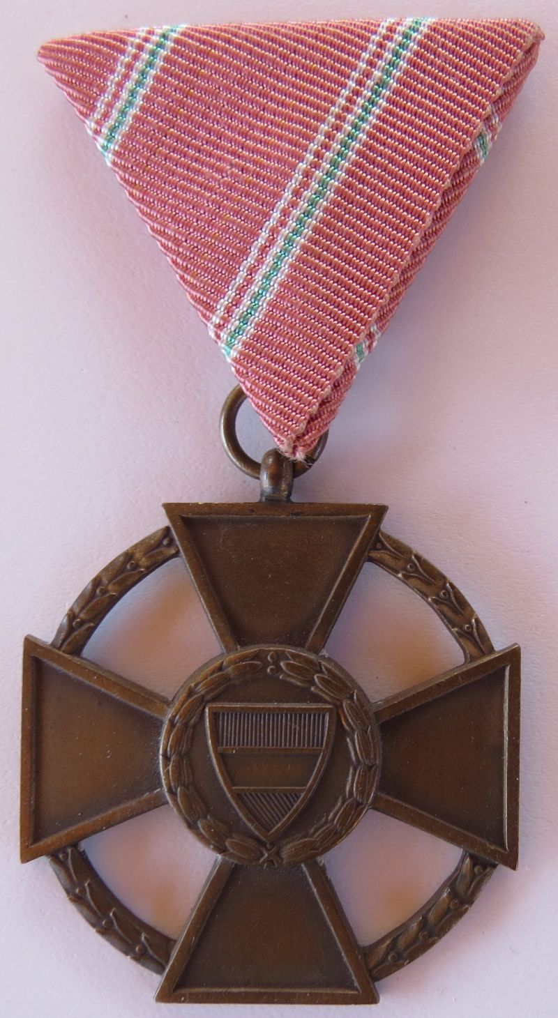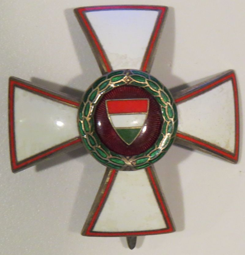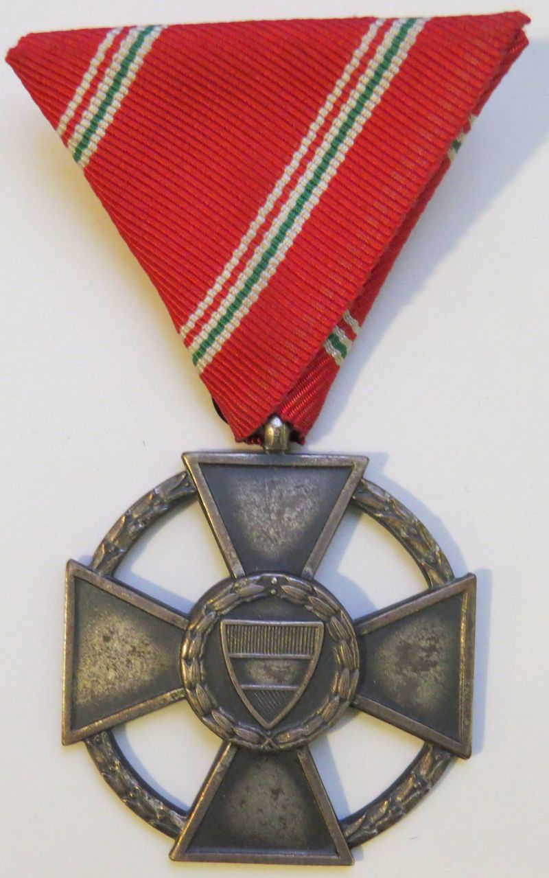 52 mm-es, domborított, egyoldalas kereszt. Hátlapja zománcozatlan, rajta az alapítási évszám és függőleges kitűzőtű van kampóval. Változata: a rátett rendjelvényen a címerpajzs nem zománcozott. Szalagsáv: 15 mm-es, kicsinyített kereszttel.