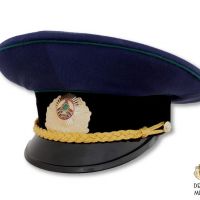 A sapka a vörös-sötétkék fegyvernemi színű állórésszel készült. Számomra érdekesség, hogy a fegyvernem jelzése nem egy szalaggal van megoldva, mint az amerikai hadsereg tányérsapkáinál, hanem ez így van varrva, egyben és elválaszthatatlanul, ugyanolyan finom posztóból, amiből a sapka többi része.
