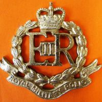 A brit hadsereg katonai rendészeinek jelenleg használt sapkajelvénye, II. Erzsébet névjelével.