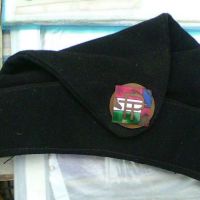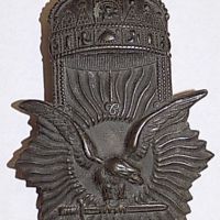A hegyi sapkával együtt tért haza ez a kivételesen szép csendőr sapka. Az anyaga a tipikus csendőr (a táboribarnánál zöldesebb árnyalatú) posztó, a topán és a rendfokozati jelzés is megfelelő fegyvernemi színű. A darab belül a viselés nyomait mutatja, de kívül kincstári állapotban van.