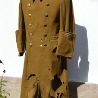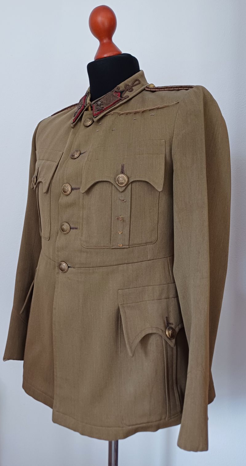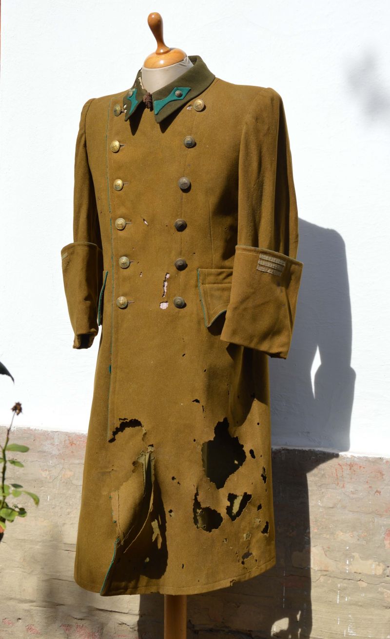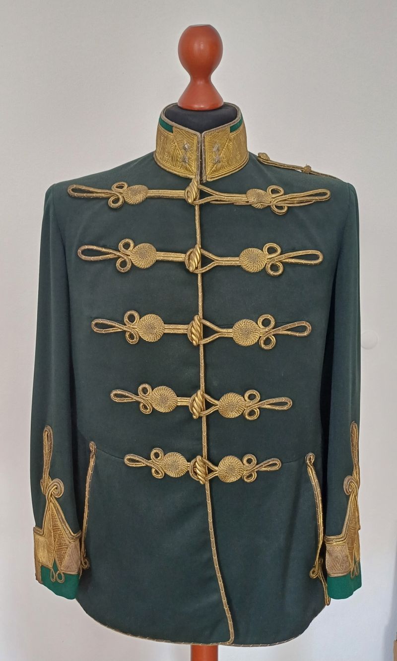 Egy pénzügyőr egyenruhában volt benne.(Soha nem hordott darab.Abból gondolom, mert a nyak részen lógott. Nem lett volna kényelmes hordani). A ruha menthetetlen volt A plomba viszont szépen megmaradt. Az egyenruhát az évek meg a molyok sajnos nem kímélték. A zöld posztóból se sok maradt. Az egyenruha gyártója Trunkhahn volt akik a csendőrségnek is szabtak egyenruhát.