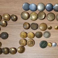 Ezek mind monarchiás gombok, ha jól gondolom. Két nagyobb csoport a számozott sárga és a nagyobb méretű sárga vagy ezüst színű gomb. Ez utóbbiak lehettek a közös gyalogezredek gombjai (zubbony vagy köpeny?), mert a közös ezredeknél a gombszín is hozzátartozott a 102 ezredet egymástól megkülömböztető jelzés rendszernek. A számozott gombok a Landwehr ezredeknél voltak, vagy esetleg a tábori vadászoknál is? Esetleg a honvédeknél? Mert ezeknek az ezredeknek egyforma színű volt a gallér hajtókájuk és a gombszínük is, tehát az azonosításhoz kellett az ezredszám. Szóval, az egyik kérdés az, hogy a számozott gombok egyformán lehettek Landwehr, vadász vagy honvéd gyalogezred gombok?