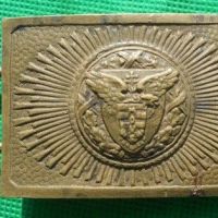 Én eddig csak olyan övcsatokkal találkoztam, amin a birodalmi kétfejű sas volt látható. Honvédeknél a magyar címer. Úgy tudom, hogy a kettős (hármas) címert hivatalos használatra 1915 végén vezették be. Lett volna bőven idő megfelelő övcsatokat is gyártani. Mégis, egészen mostanáig nem láttam ezt a csatot. Fotókon is mindig a sasos csat látszik.