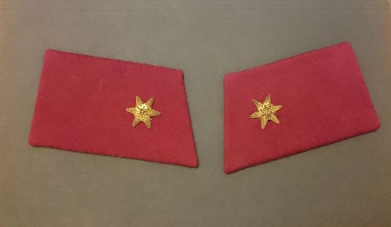 Nem különleges, bár szívesen megtudnám, hogy a sokféle vörös árnyalatot miként különböztették meg, illetve hogyan jegyezték meg anno 100 éve? De a kérdés ennél is egyszerűbb. Miként rögzítették ezeket a lapokat a gallérra? Egyszerűen felvarrták? De akkor miért készítettek külön alátétet a posztó alá?
