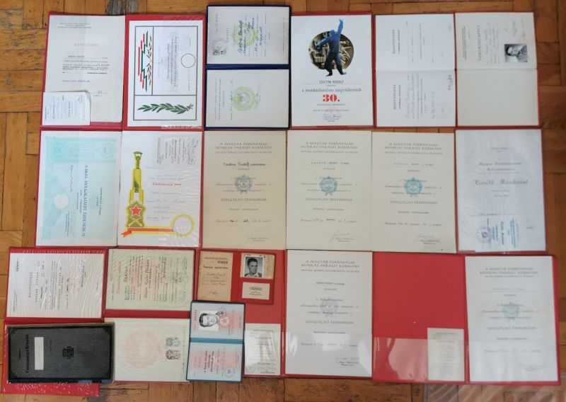 Vásáros találat. Sajnos a kitüntetések nem voltak a csomagban, viszont az édesanyja adományozó- és viselési papírjai igen, azt majd külön posztban felteszem. Az apa elég jelentős személyiség volt az előző rendszerben, egy kisebb teret és iskolát is elneveztek róla.