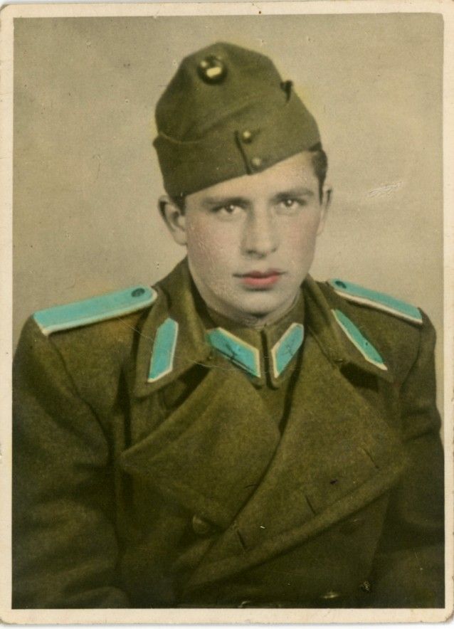 A Magyar Honvéd Légierő katonája 49M egyenruhában, korszakváltás derekán. Az utólag színezett fényképeken jól látszik az "emeletes" váll-lap. Ebben az időben a repülőcsapatok fegyvernemi színe kék-fehér volt. Ugyanez a színösszeállítás jelenik meg a gallérhajtókán is, mind a zubbonyon, mind a köpenyen, annyi eltéréssel, hogy a zubbony paroliján fegyvernemi jelvények is vannak.