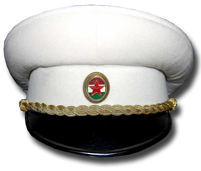 A sapka érdekessége, hogy a napellenző fekete színű. A külszolgálatosoknak, az attaséhivatalok munkatársainak a meleg égövi országokban megengedett/megtűrt viselet volt.