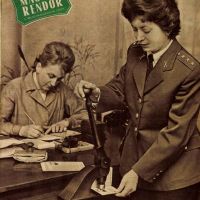 A Magyar Rendőr című hetilap 1964.04.16-án megjelent 15. számának címlapfotóján látható az 1957M női rendőr zubbony. Természetesen nincsenek mellzsebek, karcsúsított. A százados asszony az igazgatásrendészeten dolgozik, éppen a személyi igazolványok fénykép részénél száraz pecsétet nyom.