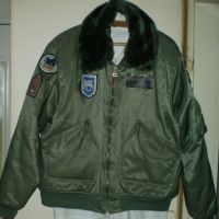 A képen egy nem rendszeresített repülő hajózó pilóta dzsekit látunk.