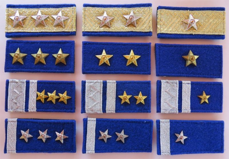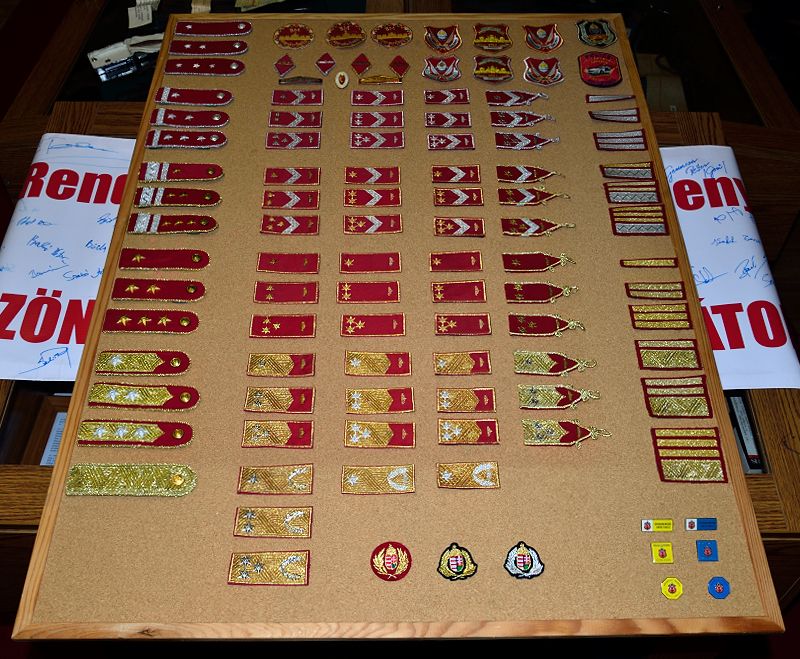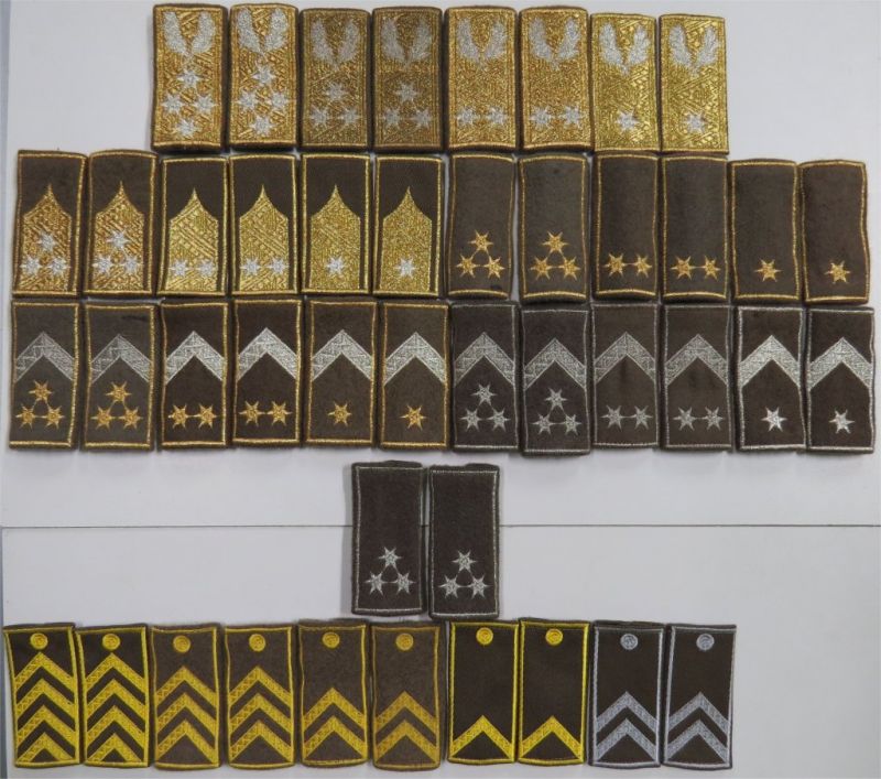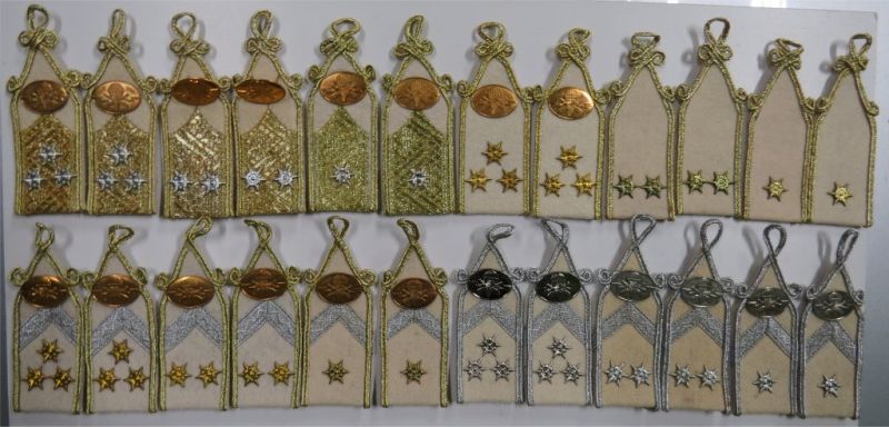 A társasági és köznapi kistársasági paroli jelzések sajnos még nem kerültek a gyűjteményembe, viszont a többit be tudom mutatni. Bizonyos rendfokozatok elkészítésére nem került sor az intézkedésben foglaltakkal ellentétben. Ennek egyszerű az oka, a MH nem rendelt belőlük. Ezek a tisztesi rendfokozatok valamint az altábornagyi és vezérezredesi rendfokozat.