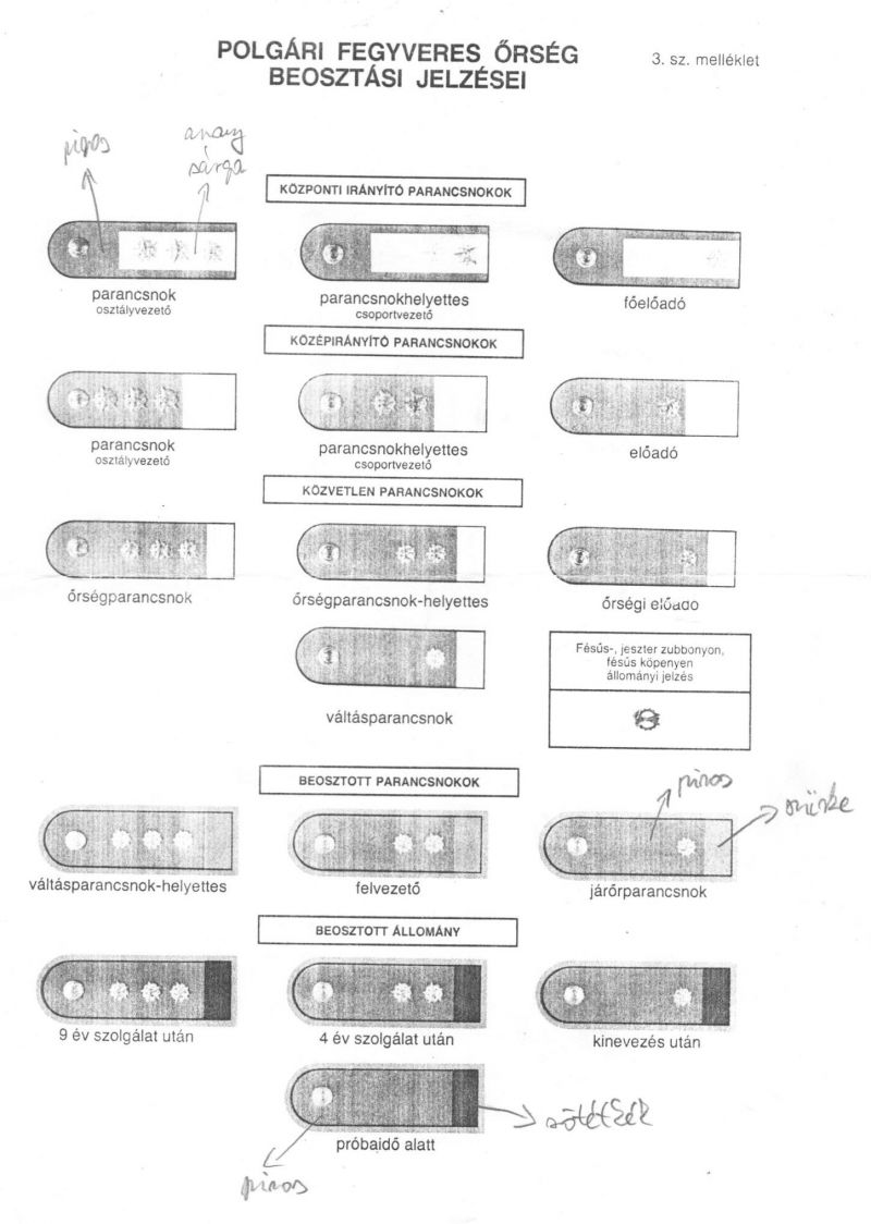 Régen eltett dobozban találtam meg ezt a fénymásolt és más által jegyzettel ellátott PFŐ Beosztási jelzések táblázatot. Anno gyűjtöttem őket, de már nagyon régen elcseréltem.