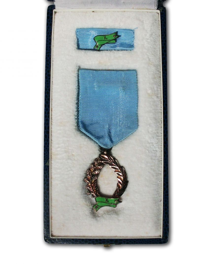 A karikában található a fémjel és az is megfigyelhető, hogy nem teljesen olyan a formája, mint az utána készült verzióé. Itt még nagyobb a fül és a levelek is eltérnek picit. További eltérés, hogy itt a "szalag" tűzzománcozott! A miniatűrön is, mely szintén ezüstből készült.