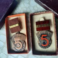 - 1951: Bronzszínű alumínium test kerek akasztóval, szövettel borított szalaggal, rajta fémszalag az évszámmal