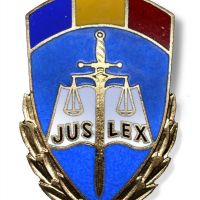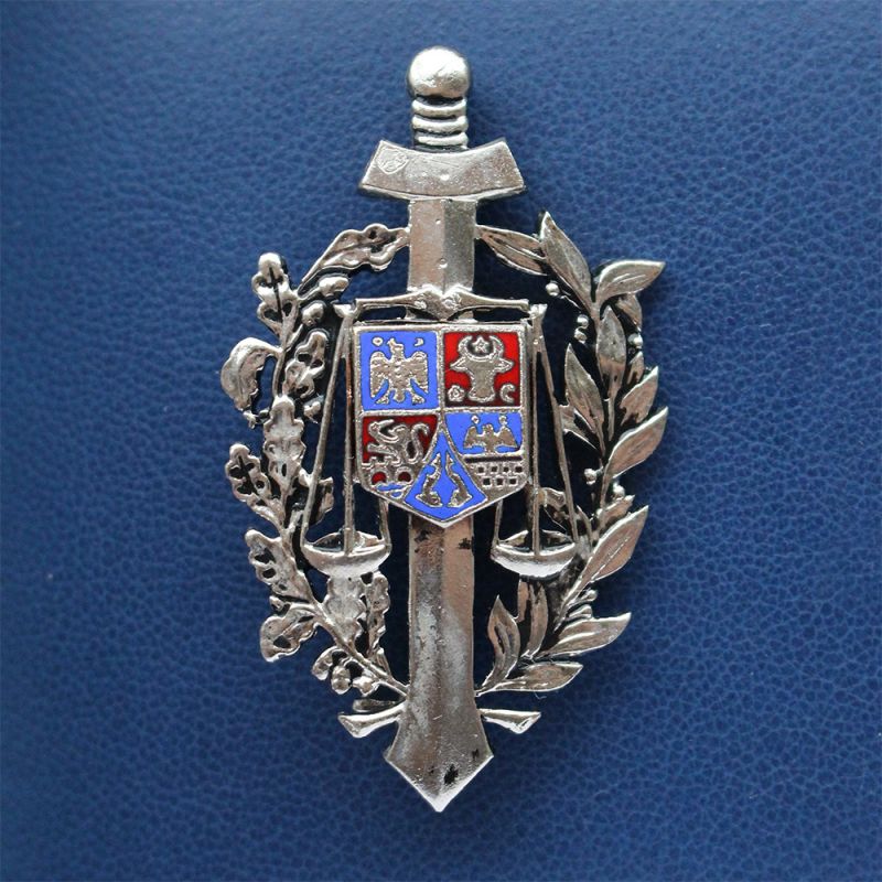 A bíráknak és az egyéb jogász hivatásrendeknek is van (másféle) jelvényük, egyedül az ügyészeké ilyen alakú. Romániában az ügyészség, így a jelvény háttérszíne is a kék.