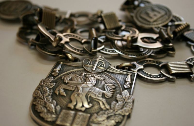 A bírói jelkép viselete Litvániában is történelmi hagyomány, a lánc jelenlegi formájában 2004 óta használatos.A szabályozó szerint a lánc és a rajta lévő, 76×60 mm méretű pajzs alakú medál oxidált ezüst bevonatú, a pajzs tetején az igazságosság szimbólumai, a kard és a mérleg láthatók dekoratív falikárpitok között, alul egy, az “OMNES SERVI LEGUM SUMUS UT LIBERI ESSE POSSIMUS”* szöveget tartalmazó, tölgyfaágak által ölelt nyitott könyv, középen pedig Litvánia címerpajzsának központi alakja, Vytis, a lovag helyezkedik el. A láncot 23 mm széles domborított szemek alkotják, amelyek közül három az első erődítményt építő litván nagyherceg, Gediminas - szintén a nemzeti jelképrendszer részét képező - pilléreivel és a nap képével díszített.Litvánia bírái a kinevezésük és eskütételük alkalmával veszik át a láncot a köztársasági elnöktől.