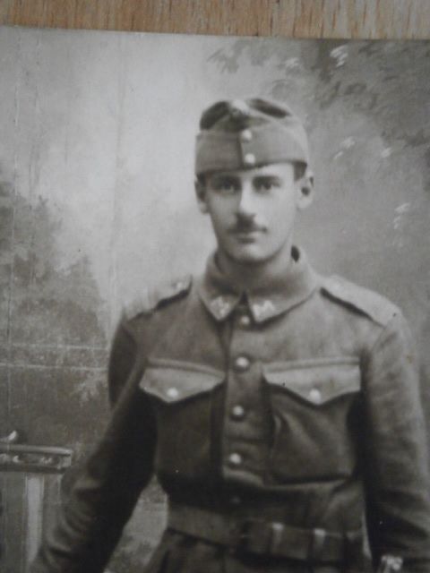 Egy családi fotóalbum része a kép.(Hild család.) Középen a lekötött szemű úr Hild József, harcolt az első világháborúban és később a helyi frontharcosok egyik oszlopos tagja lett, majd részt vett Kárpátalja visszafoglalásában, a fotók tanúsága szerint.