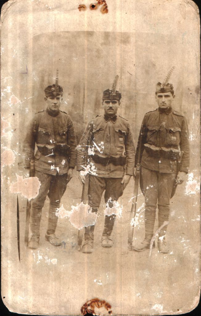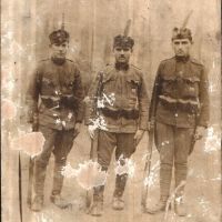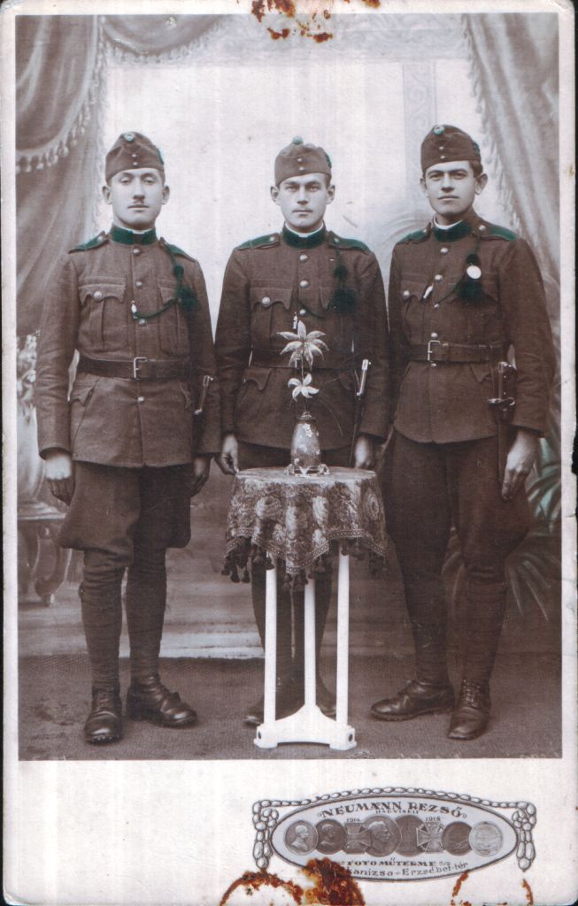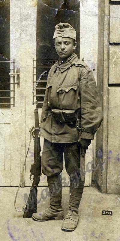 Sajátos összeállítás, minden bizonnyal az I. világháború végéről: szemernyő nélküli tábori sapka, kissé túlméretes zubbony egyszerűsített hajtókával, 1 db kettős tölténytáska, 1915 M egyszerűsített utászkard és 1895 M Mannlicher karabélykurtály.