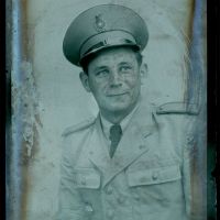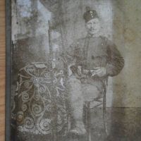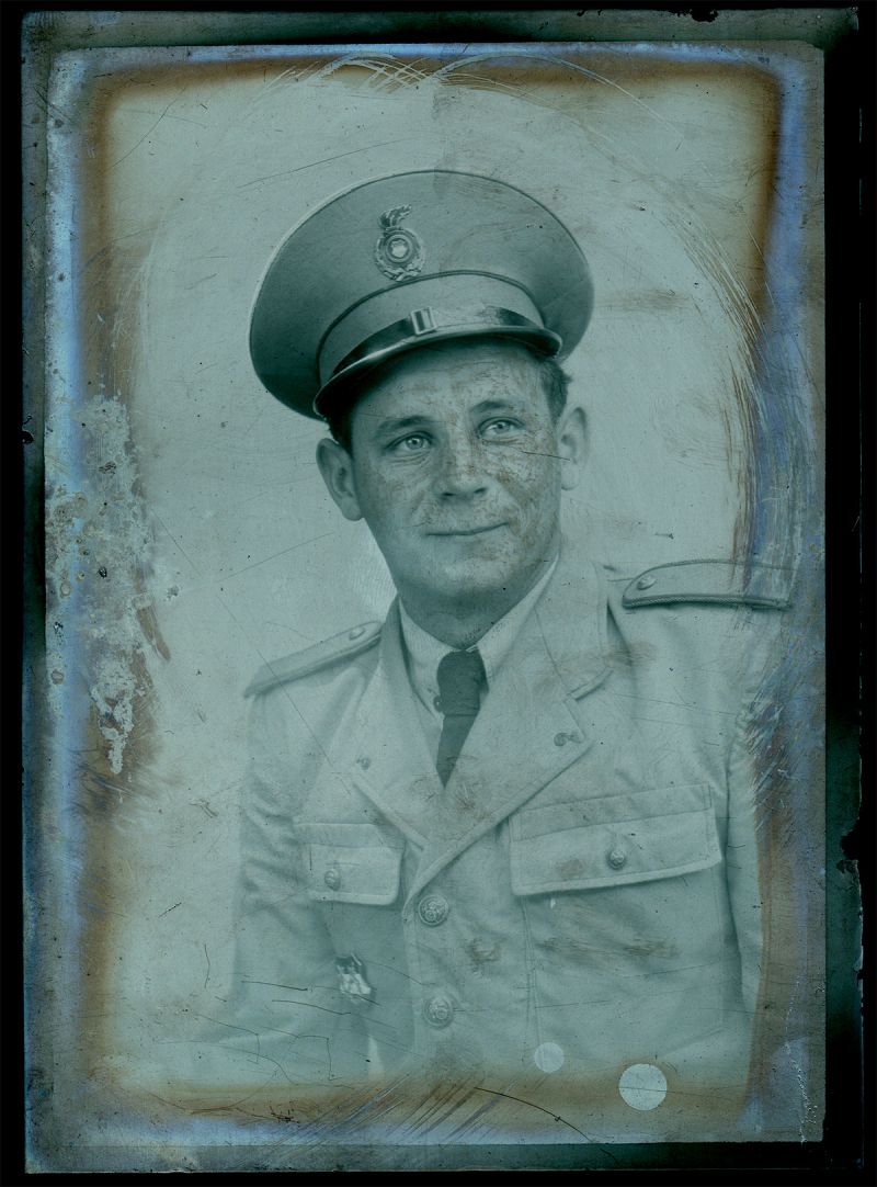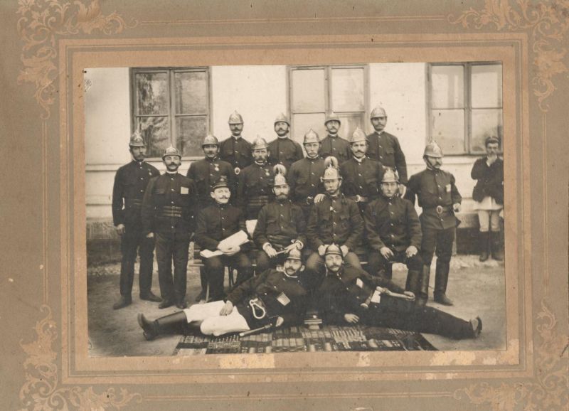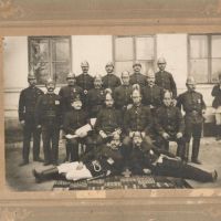 Ritkán látott tűzoltó bajtárs egy nagyon rossz állapotú üveglemez-negatívról. A rendfokozatát nem látom.